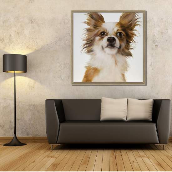 Peinture sur toile d'un chien Chihuahua, plus vrai que nature.