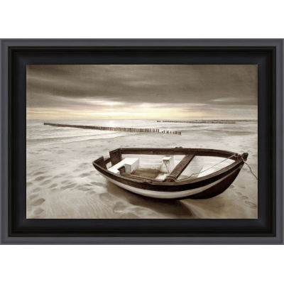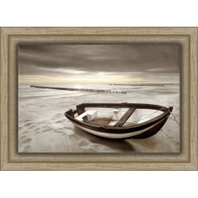 Superbe tableau d’un bateau fantôme dans un paysage lumineux.