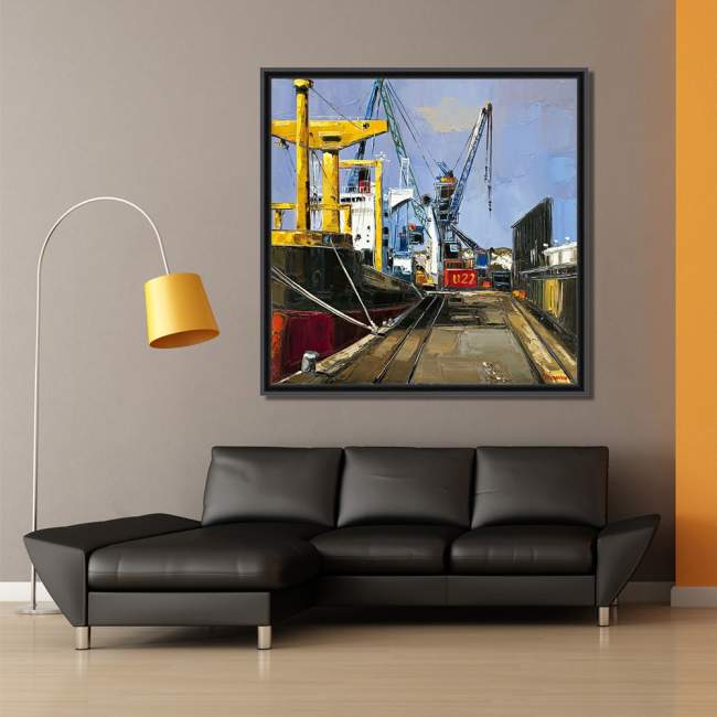 Illustration sur toile d'un chantier naval par l'artiste français Fabien Novarino : U22 La Joliette.