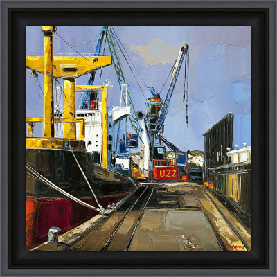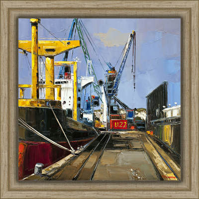 Illustration sur toile d'un chantier naval par l'artiste français Fabien Novarino : U22 La Joliette.