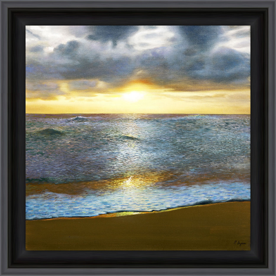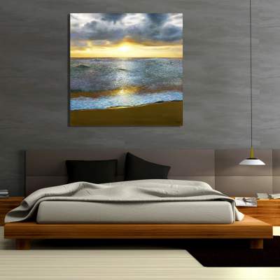 Reproduction d'un coucher de soleil sur une toile coton de format carré.