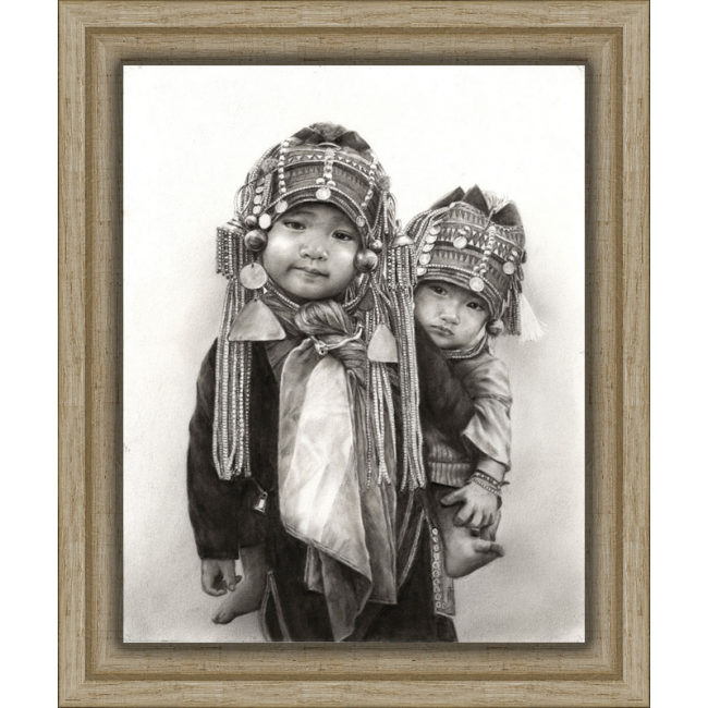 Jolie reproduction en peinture sur toile pour ce portrait d'enfants d'Asie.