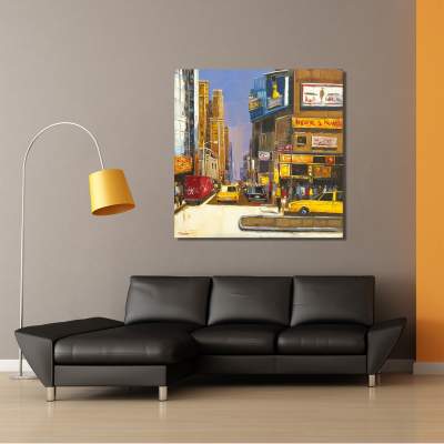 Cette oeuvre unique et originale représentant le Shopping à Broadway, a été réalisée par l'artiste Fabien Novarino, qui conçoit des oeuvres contemporaines, à base de photographies d'icônes, de comics, ou encore de symboles néo pop.