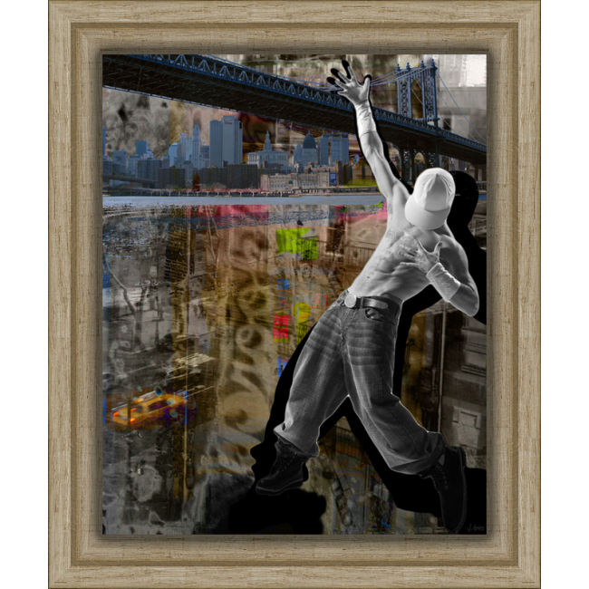 L'artiste Valérie Gho nous livre ici une peinture en technique mixte, exprimant un univers très américain : Manhattan Bridge.