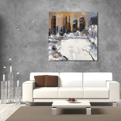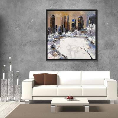 Cette oeuvre unique et originale représentant Central Park sous la neige, a été réalisée par l'artiste Fabien Novarino, qui conçoit des oeuvres contemporaines, à base de photographies d'icônes, de comics, ou encore de symboles néo pop.